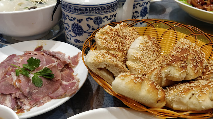 The mutton soup is bland, but not well-received. The sesame seed cake is hard on the edge and soft in the middle, ymmv, but not fragrant, more like naan