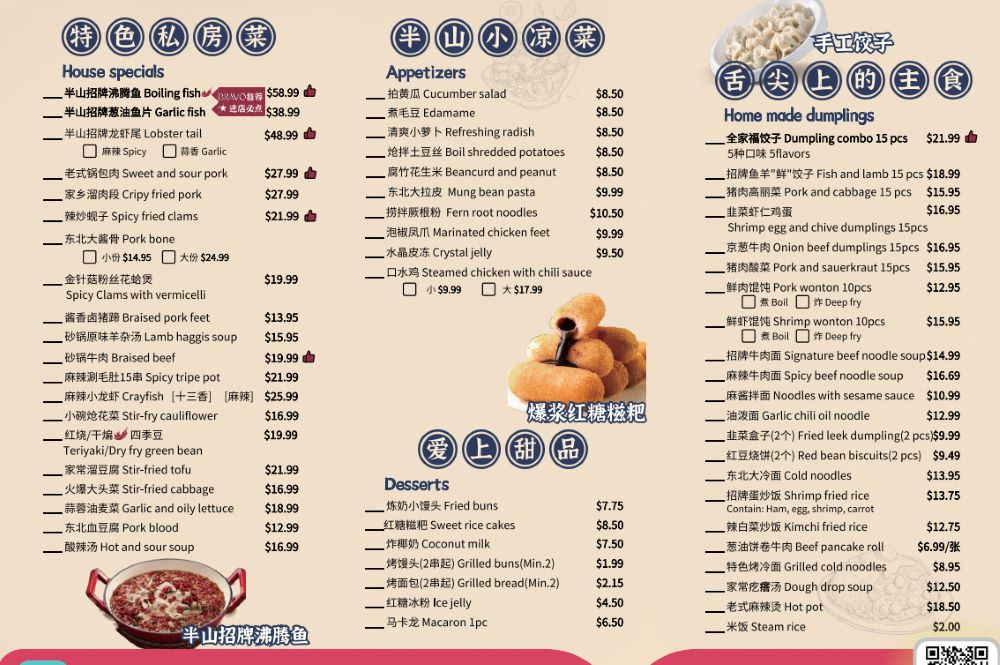 Banshan BBQ Restaurant is a Northern Chinese barbecue spot in Coquitlam, BC, known for its variety of grilled skewers and hearty comfort dishes. The menu features lamb, beef, pork belly, and seafood skewers, along with items like mung bean pasta and handmade dumplings. The casual setting and late-night hours make it a popular choice for groups and families seeking authentic flavors.