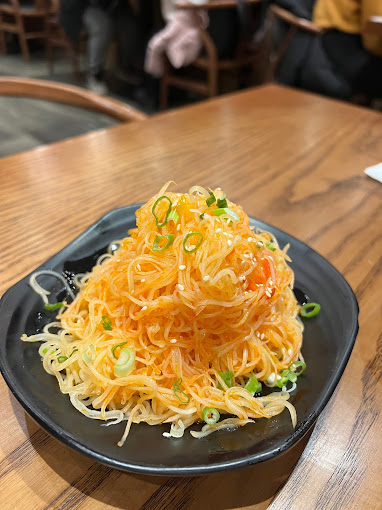 Yunshang Rice Noodle is a fast-casual Chinese restaurant specializing in Yunnan-style rice noodle soups. Their signature dish, "Crossing-the-Bridge" rice noodles, features a rich broth simmered for over 12 hours, served with fresh meats and vegetables cooked tableside, followed by silky rice noodles. The menu offers a variety of bold flavors, including spicy & sour beef with enoki mushrooms, tomato-based broths, and Sichuan-style options. Dine-in guests enjoy unlimited rice noodle refills, making it a popular spot for hearty, customizable meals.