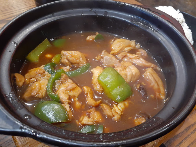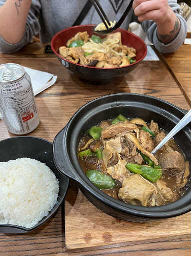 Yang’s Braised Chicken Rice is a fast-casual Chinese eatery specializing in a single signature dish: huang men ji, or braised chicken stew. This Shandong-style comfort food features tender chicken thighs simmered in a savory soy-based sauce with shiitake mushrooms, ginger, and chili peppers, served alongside steamed rice. Diners can customize their spice level—mild, medium, or spicy—making it a satisfying and straightforward option for a quick, flavorful meal.