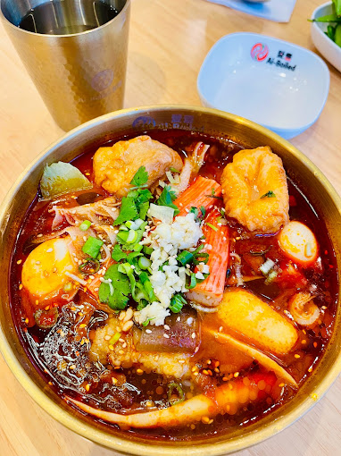 Ai-Boiled is a modern Sichuan-style eatery offering customizable hot pot and noodle bowls. Guests select from a variety of fresh ingredients, including meats, vegetables, and noodles, which are then prepared in flavorful broths or spicy sauces. The restaurant emphasizes healthy dining with MSG-free options and a focus on fresh, high-quality components. Its clean, casual setting and efficient service make it a popular choice for a quick, satisfying meal.