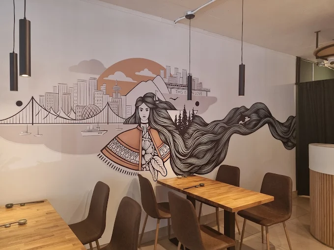 Ukrainian-style sushi fusionFresh produce & dessertsCafé + sushi comboleek & clean downtown vibe