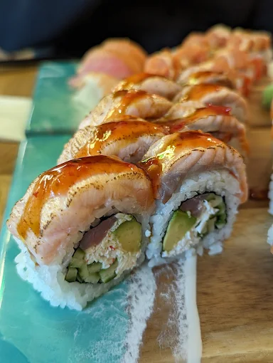 Ukrainian immigrants Serhii & Dmytro blend Japanese sushi with Eastern European twists: smoky salmon, cheese or spice accents inside rolls; fresh sashimi + nigiri; desserts like lemon loaf, crafted coffee & café sweets. Lunch combos (nigiri + roll) offer solid value. Fun, fresh, slightly unexpected sushi in a sleek downtown spot