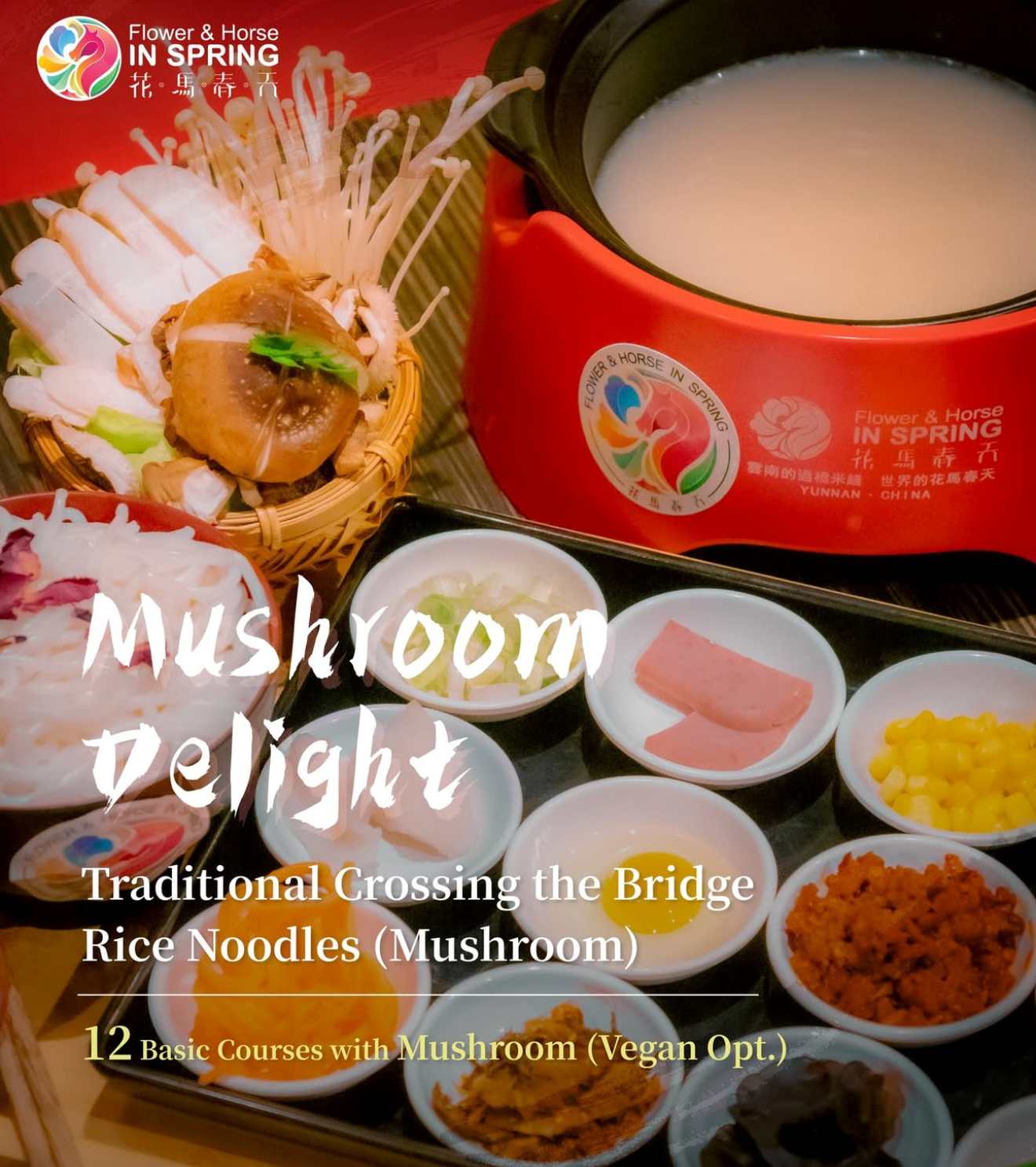 Flower & Horse in Spring offers a taste of Yunnan cuisine in Vancouver, specializing in the traditional "Crossing the Bridge" rice noodles. This dish allows diners to assemble their own noodle bowls by adding various toppings to a steaming broth, creating a personalized and interactive meal. The restaurant's menu features a variety of options, including the "Mushroom Delight" and "Holy Cow" noodle bowls, as well as rice combos and appetizers. With its focus on authentic flavors and a unique dining experience, Flower & Horse in Spring provides a culinary journey into Yunnan's rich gastronomic heritage.eGift Card Offers