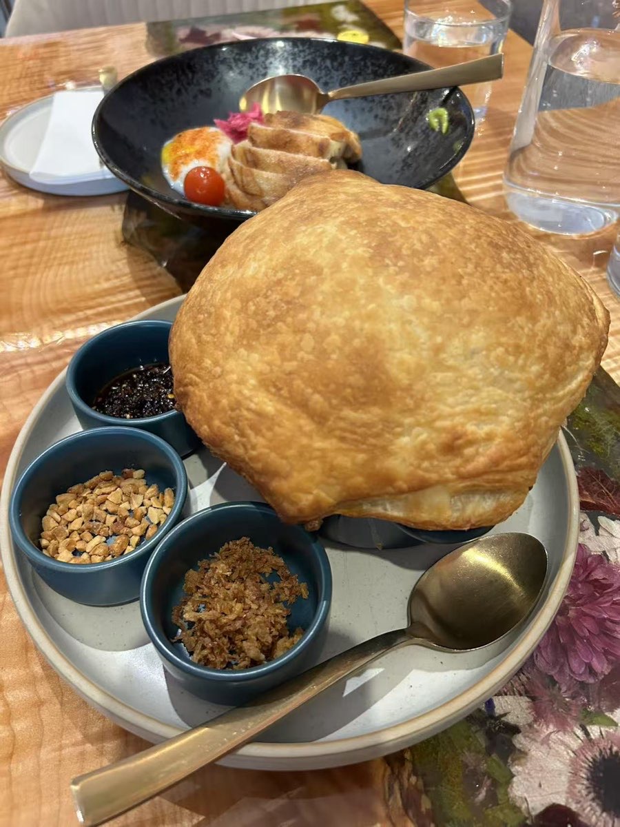 smoked duck cucumbersbraised octopusseafood congee pot piechicken french toastroast pork jowl