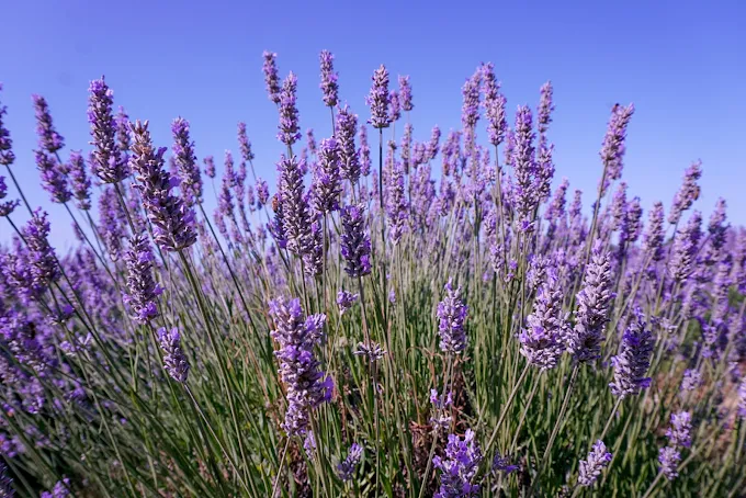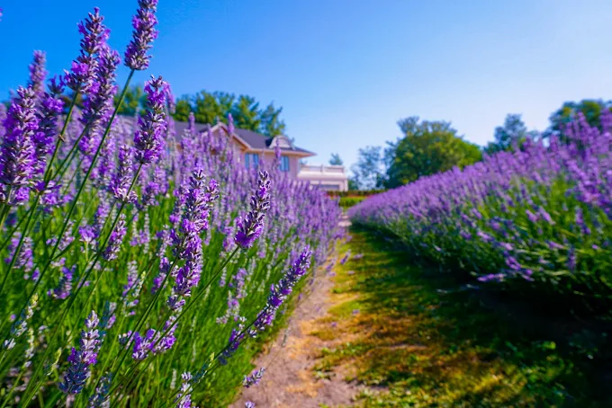 Wander through rolling fields of blooming lavender