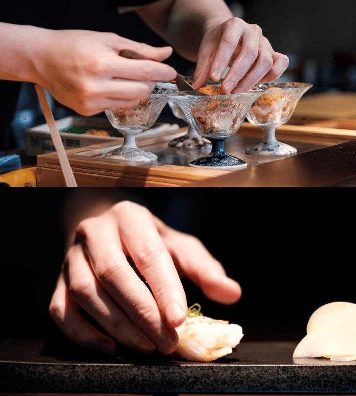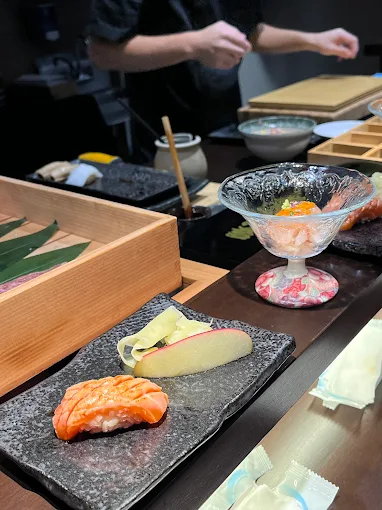 Local seasonal ingredientsDual omakase menusElegant platingQuiet upscale vibe