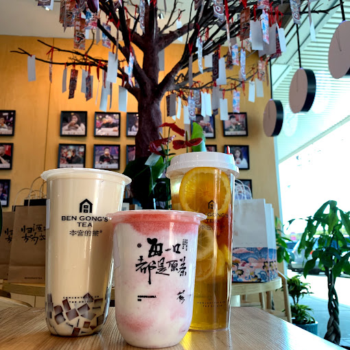 Ben Gong’s Tea (本宫的茶) is a premium bubble tea brand blending traditional Chinese tea culture with modern aesthetics. Known for its elegant packaging and high-quality ingredients, it offers a diverse menu featuring signature drinks like Osmanthus Oolong Milk Tea, Da Hong Pao Brown Sugar Pearl, and Peach Oolong Milk Tea. The menu also includes fruit teas, cheese slushes, and sparkling teas, all crafted with seasonal fruits and handmade boba pearls. With locations in Richmond and Vancouver, Ben Gong’s Tea provides a stylish and refined setting for tea enthusiasts seeking both flavor and visual appeal.eGift Card Offers