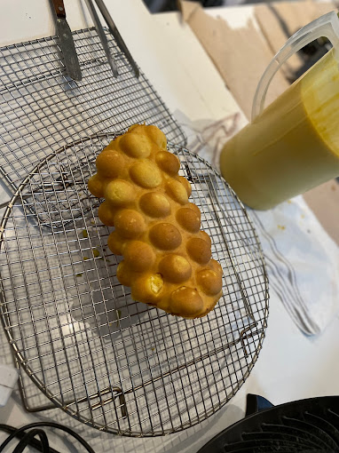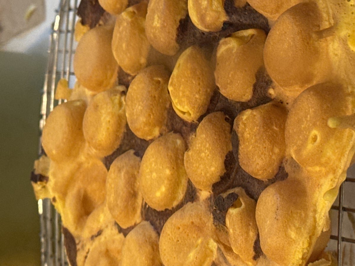 cheese waffle is so good and they make it with lots of batter and no holes in it