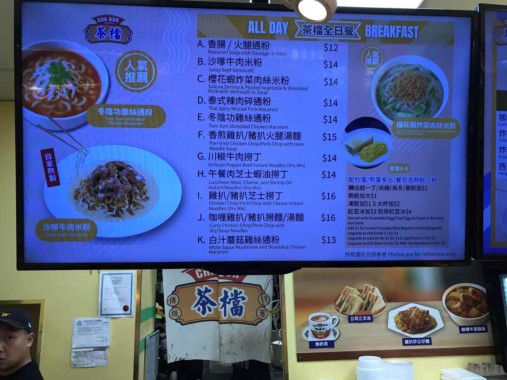 Cha Don serves classic Hong Kong–style comfort food with a focus on all-day breakfast sets, including silky scrambled egg toast, satay beef noodles, macaroni soup, and baked pork chop rice. The environment is casual and fast-paced, located inside the Empire Centre food court with a straightforward, no-frills setup perfect for a quick and satisfying meal. A sister concept to the popular Cha Kee, Cha Don brings the same beloved flavors in a simpler format, earning quick popularity among locals for its speed, taste, and nostalgic HK diner vibe.