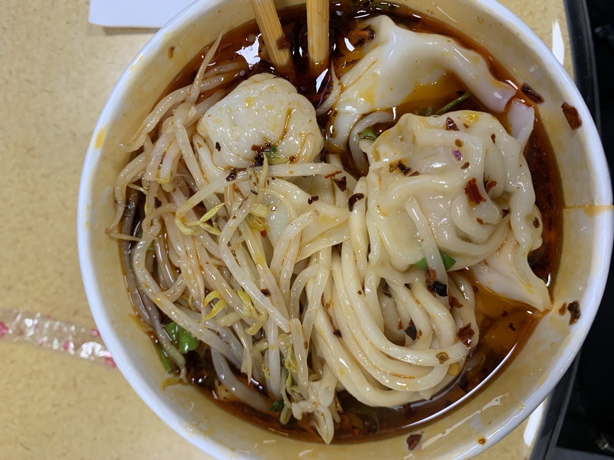 Spicy wonton with noodles, medium spiciness is very stimulating, most people probably can't challenge it.