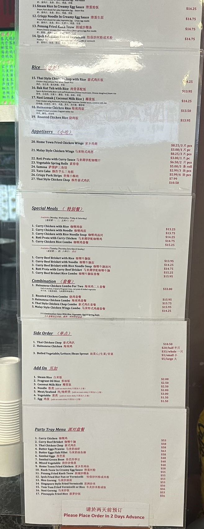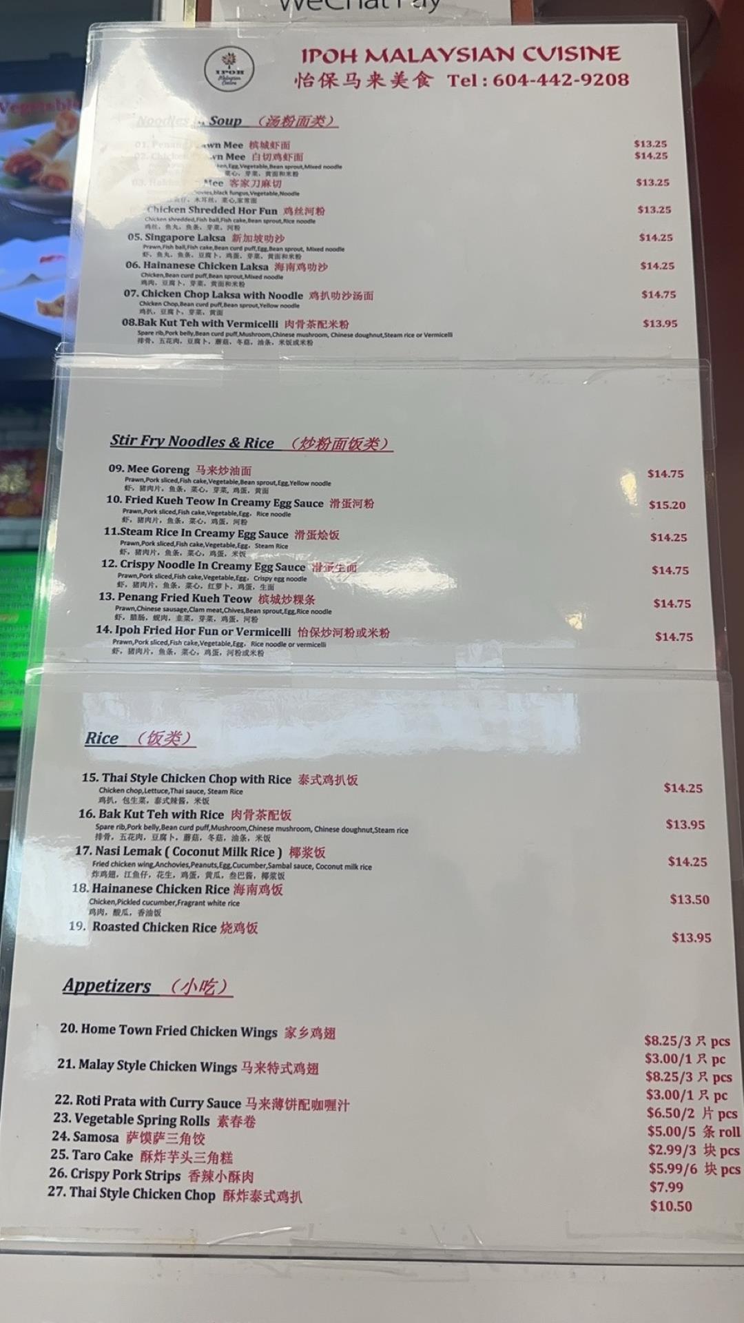 IPOH Malaysian Menu