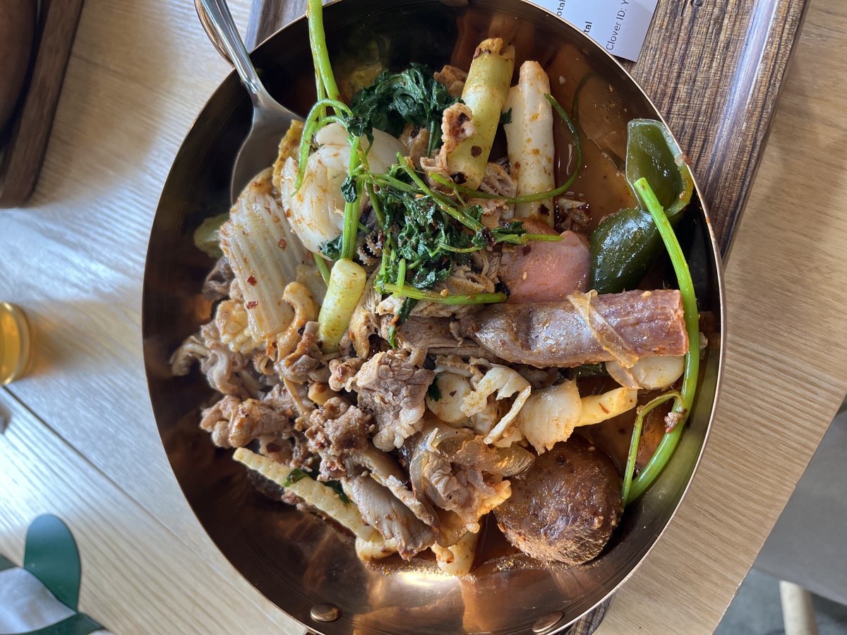 JoJo Pot is a self-serve hot pot restaurant offering a customizable dining experience. Guests select ingredients from a variety of fresh meats, seafood, vegetables, and noodles, which are then cooked in a choice of flavorful broths, including the signature pork bone and seasonal options like lobster bisque. The pay-by-weight model allows for personalized portions, and a sauce bar provides an array of condiments to enhance the meal. With its casual atmosphere and diverse offerings, JoJo Pot delivers a satisfying hot pot experience.