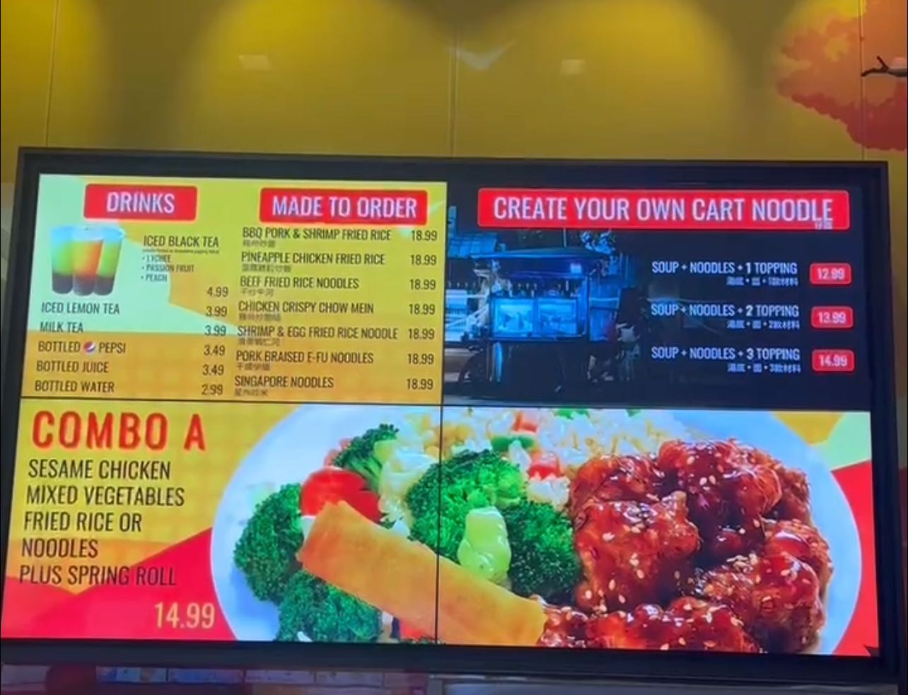Kung Pao Wok is a fast-casual Chinese eatery located in the Richmond Centre food court. It offers a variety of customizable combo meals featuring popular dishes like Kung Pao chicken, sesame chicken, and sweet & sour pork. Customers can choose from 2, 3, or 4-item combos, complemented by sides such as fried rice, chow mein, or vegetables. The menu also includes noodle soups like wonton and beef brisket noodle soup. Known for its generous portions and quick service, Kung Pao Wok provides a convenient dining option for shoppers and those seeking affordable Chinese cuisine.