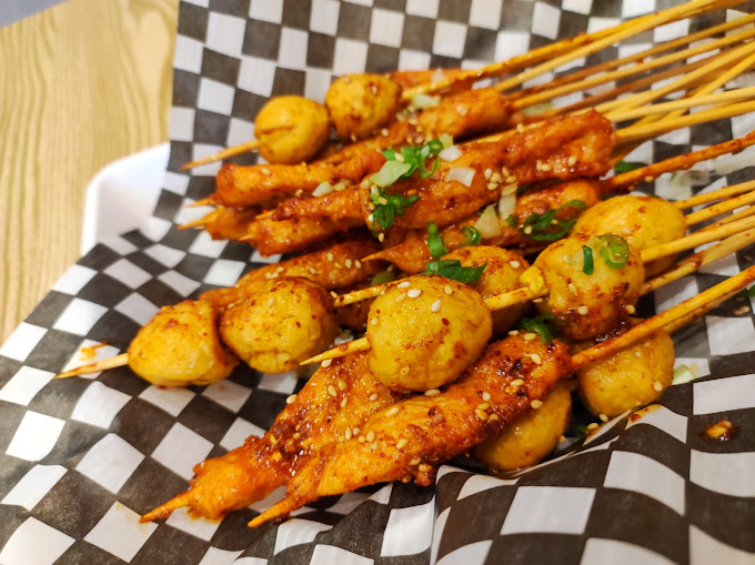 Kwafood Fried Skewer is a Chinese fast-casual eatery specializing in deep-fried skewers. The menu features a variety of meat and vegetarian options, including diced beef, lamb, chicken gizzards, fish tofu, and crispy chicken skin. Customers can customize their spice level, making it a popular spot for those seeking bold flavors in a casual setting.