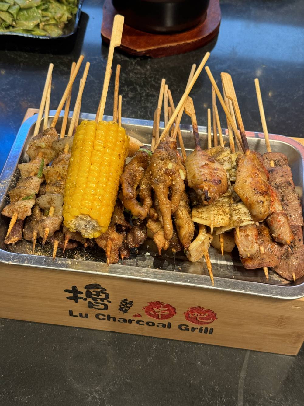 Lu Charcoal Grill is located on Leslie Road in Richmond and specializes in Northern Chinese style charcoal-grilled skewers, while also offering Tianjin-style breakfast and soups during daytime. Guests pick raw skewers from a cold display (meat, seafood, vegetables) and hand them to the grill—what comes back are intensely seasoned, smoky skewers. The vibe is casual and bustling, perfect for late-night skewers and beer.