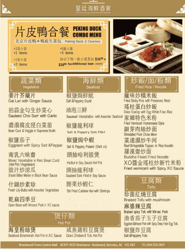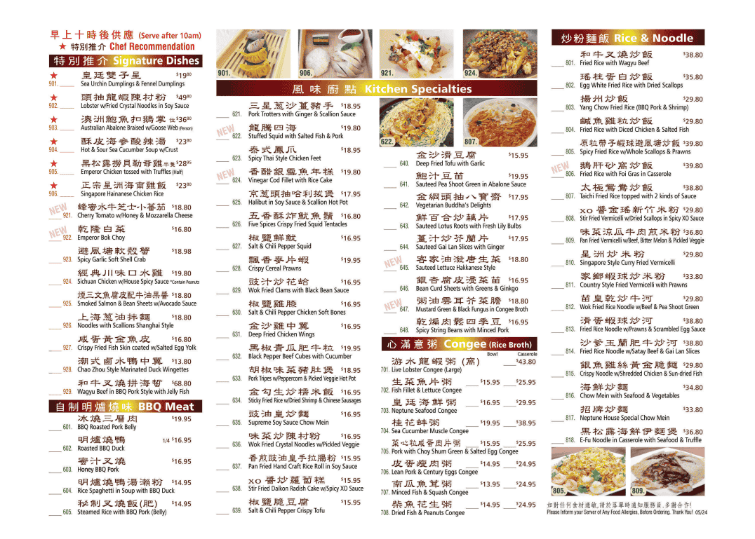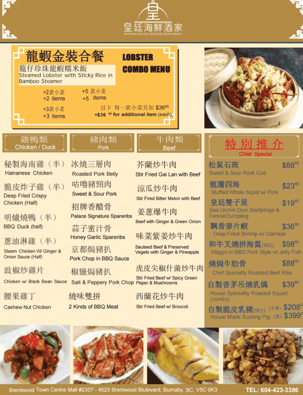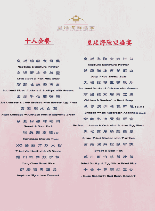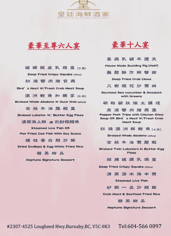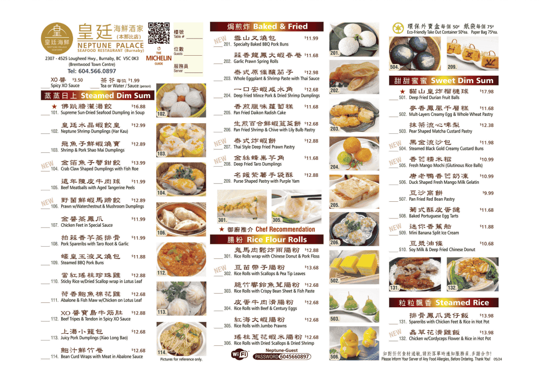 Neptune Palace (Brentwood) is a Michelin-Recommended Cantonese seafood restaurant known for refined dim sum and premium sea fare. Their daytime offerings include expertly crafted dumplings, juicy shrimp wontons, and comforting congee; in the evening the menu expands to include lobster, abalone, sea cucumber and roast duck. The space is elegant and dignified, making it ideal for family dinners or special celebrations.
