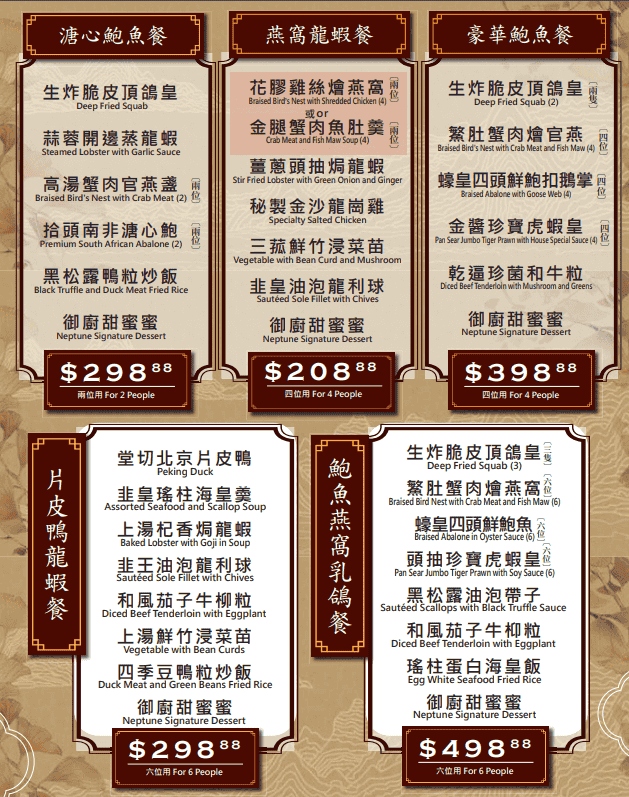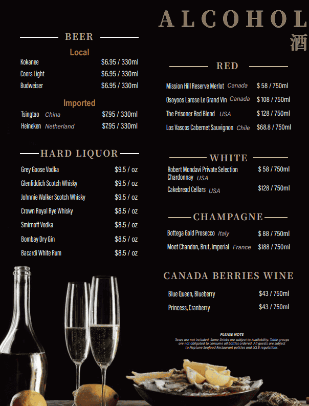 Neptune Seafood Menu