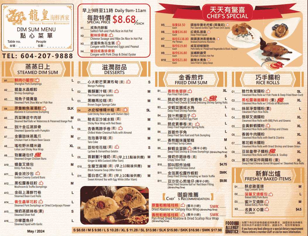 Neptune Seafood Restaurant is a well-regarded Cantonese eatery in Richmond, BC, celebrated for its high-quality dim sum and seafood dishes. Patrons frequently commend the restaurant for its attentive service and inviting ambiance, making it a popular choice for both casual dining and special occasions.