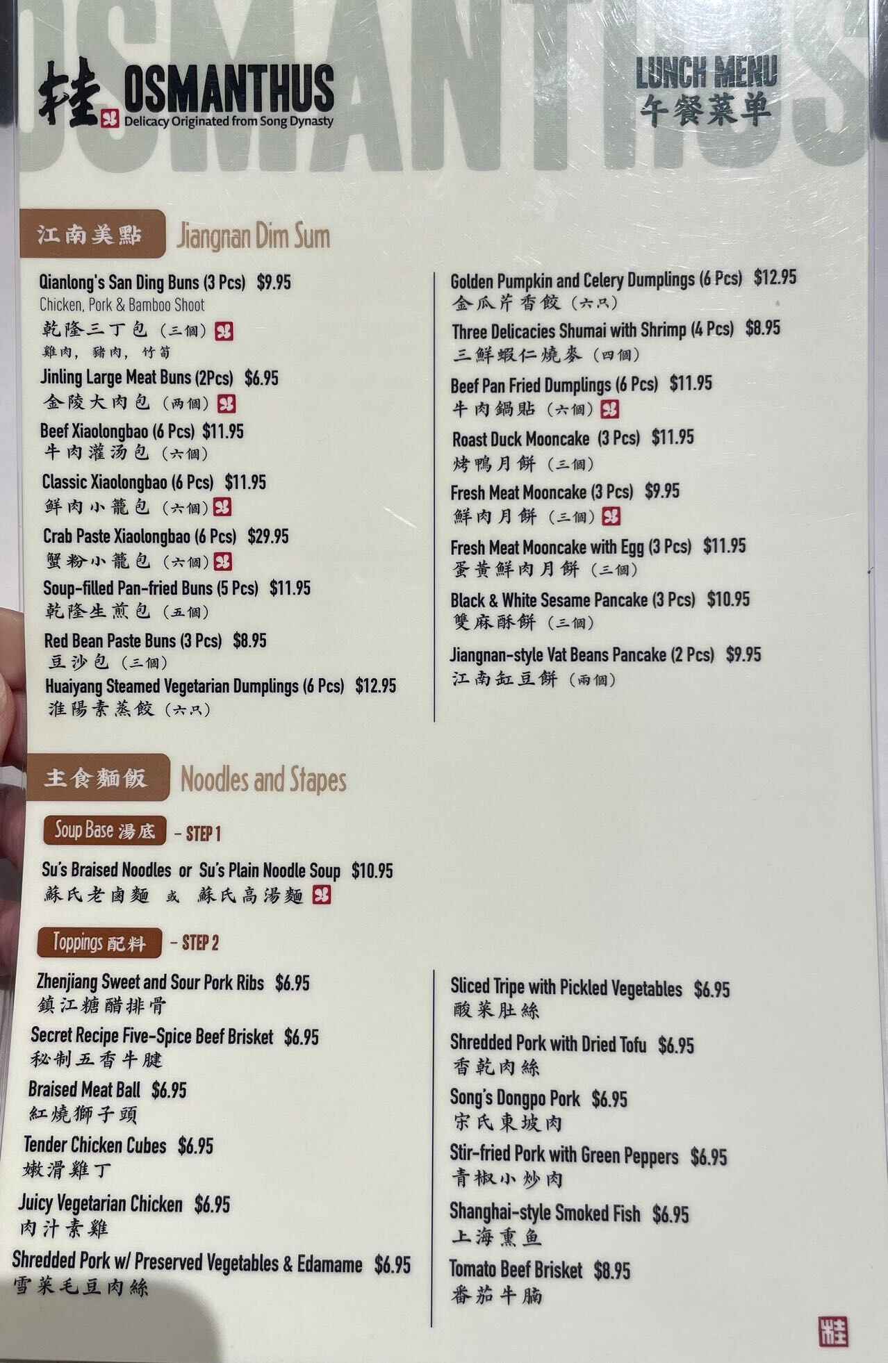 At Osmanthus 桂, Jiangnan flavours take centre stage: delicate meat-filled buns, fish wontons in rich broth, pan-fried buns with crisp bottoms, soothing congees, and house desserts like steamed rice cakes or pumpkin and sweet potato pastes. Seafood options—like crab, sea bass, and premium fish maw soup—add luxury without pretension. Perfect when you’re craving refined Chinese cuisine in a polished setting