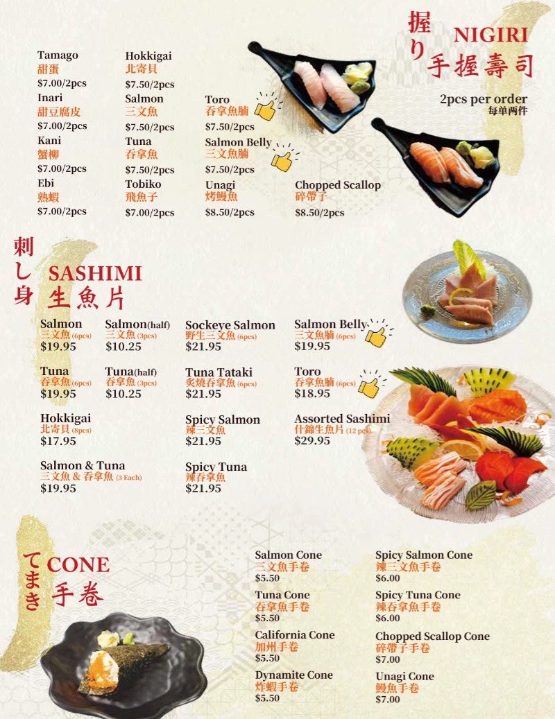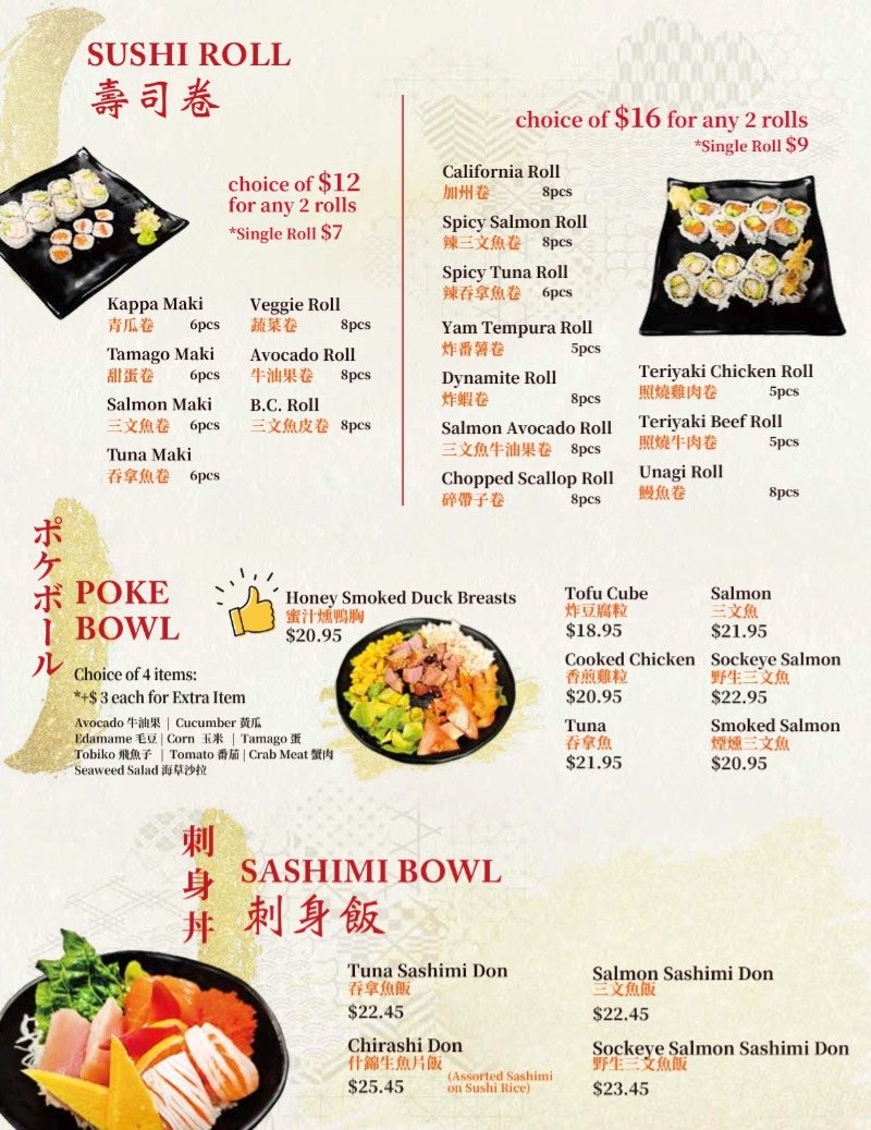 Ryuu Japanese Kitchen YVR offers contemporary Japanese comfort food with a wide menu covering sushi rolls, sashimi, nigiri, aburi selections, donburi bowls, udon, and hearty bento sets. Known for fresh ingredients and generous portions, Ryuu blends casual homestyle Japanese dishes with modern touches. The space is welcoming and laid-back, making it ideal for everyday meals, lunch with coworkers, or relaxed dinners without the formality of upscale Japanese dining.