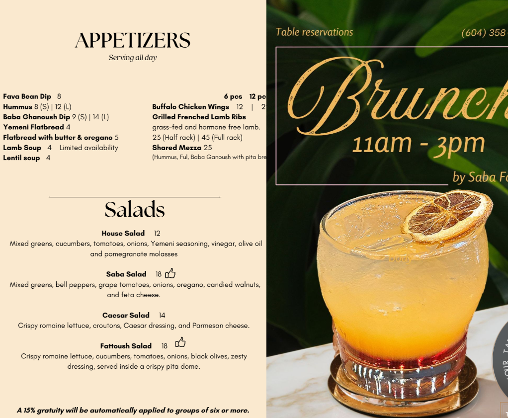 Saba Foods, located at 2881 Granville St, Vancouver, is a Halal-certified restaurant specializing in Yemeni and Middle Eastern cuisine. They emphasize grass-fed, hormone-free ingredients and offer slow-roasted lamb shoulders, fava bean stews, and traditional desserts.
