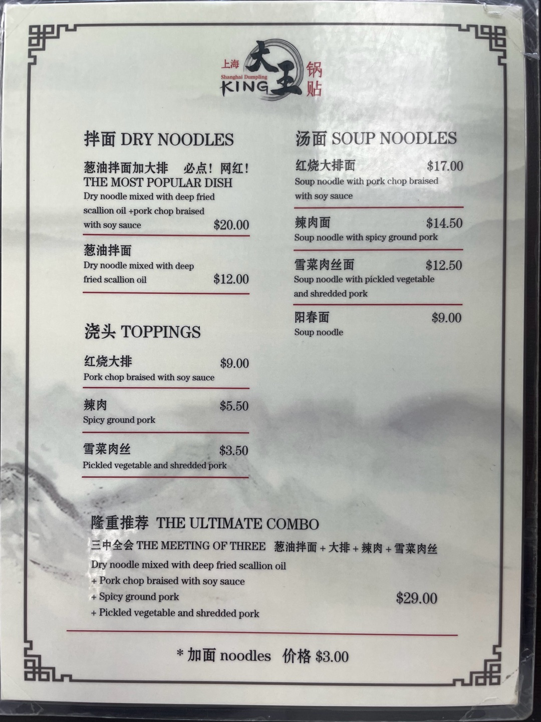 Shanghai Dumpling King Menu
