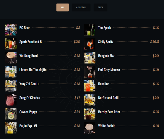 Spark Kitchen Menu