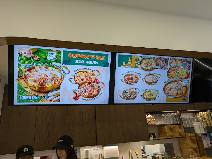 Super Thai Hot Pot is a self-serve Thai-style hot pot restaurant located at 3327 Kingsway in Vancouver's Renfrew-Collingwood neighborhood. Opened in early 2025, it offers a modern, vibrant dining experience with a sleek interior featuring golden bowls and tropical décor. The restaurant specializes in bold, aromatic broths like Signature Tom Yum, Szechuan Spicy, and Thai-style Satay. Guests can customize their meals by selecting from over 100 fresh ingredients—including meats, seafood, vegetables, and noodles—which are priced by weight and cooked to order. Super Thai Hot Pot combines the flavors of traditional Thai cuisine with the intense heat of Mala spices, offering a unique hot pot experience.