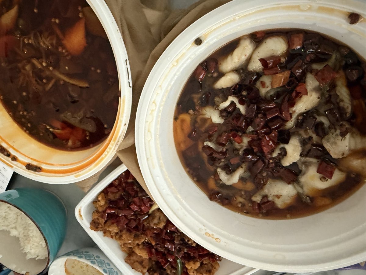 The boiling fish is fresh, the maoxuewang is good, and the spicy chicken is a bit strange, like fried chicken nuggets