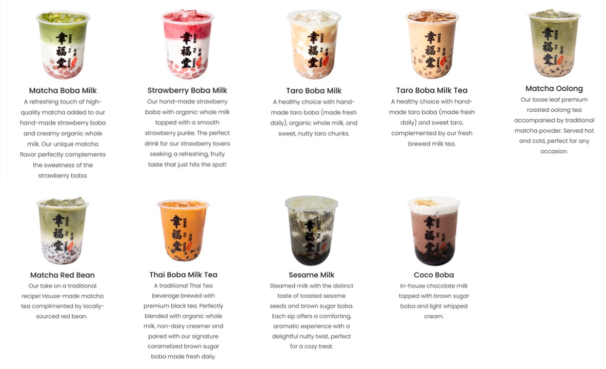 Xing Fu Tang is a renowned Taiwanese bubble tea brand celebrated for its handcrafted brown sugar boba. Founded in 2018 by Edison Chen in Taipei, the brand's name translates to "realm of happiness," reflecting its mission to bring joy through its beverages. Inspired by Chen's grandmother's traditional recipes, Xing Fu Tang emphasizes authenticity and quality in every cup. They offer offers a variety of signature drinks, including the popular Brown Sugar Boba Milk, where pearls are stir-fried and caramelized in a golden wok before being flame-torched in front of customers. Other favorites include the Gold Foil Boba Milk and the Mango Smoothie with Bunny Panna Cotta.