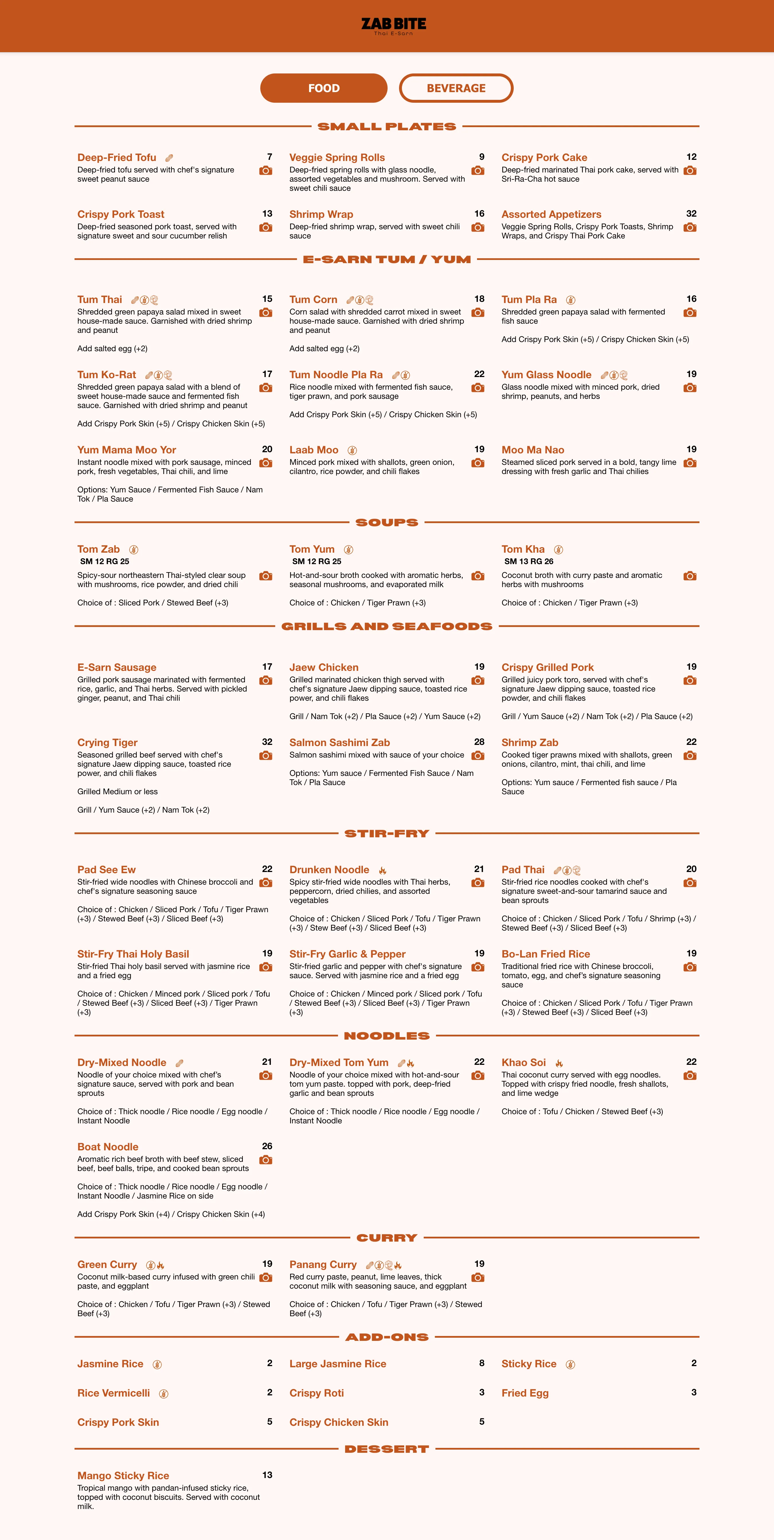 Zab Bite Menu
